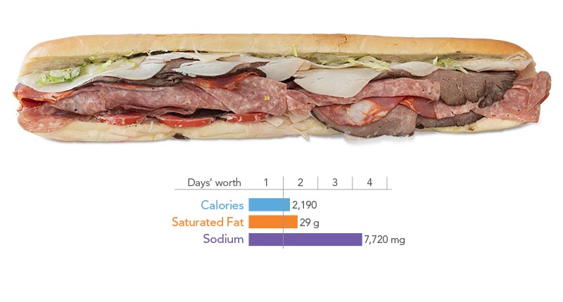 “The only thing better than a sandwich, is a sandwich twice the size,” tweeted Jimmy John’s. Jimmy’s 16-inch Giant Gargantuan comes with salami, capicola, turkey, roast beef, ham, provolone cheese, onion, lettuce, tomato, mayo, and oil & vinegar.