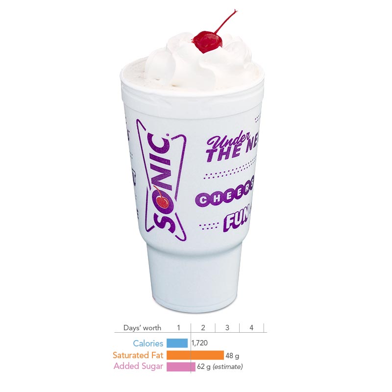 Sonic’s Oreo Peanut Butter Master Shake is “real ice cream mixed with rich peanut butter and Oreos into a thick and creamy shake, finished with whipped topping and a cherry.”