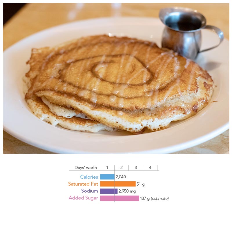 It’s not easy to cram 2,040 calories into three pancakes. But The Factory works wonders with cinnamon-brown sugar, white flour, icing, and butter-infused syrup. Why not call it brunchinner?