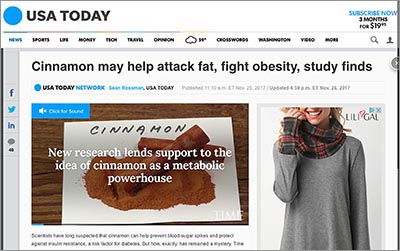 "University of Michigan research fi nds an essential oil in cinnamon attacks fat cells and could be used as a treatment to fight obesity,” reportedUSA Today in November.