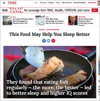 “Forget warm milk. A new study from the University of Pennsylvania says that fish may be the key to a good night’s sleep,” reportedTime in December.