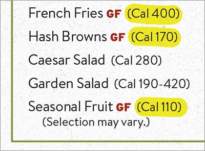 It’s about time. The Center for Science in the Public Interest, Nutrition Action’s publisher, has campaigned for menu labeling for over 15 years. These excerpts from menus show you what to look for (in yellow) and OUR TAKE on what it means.