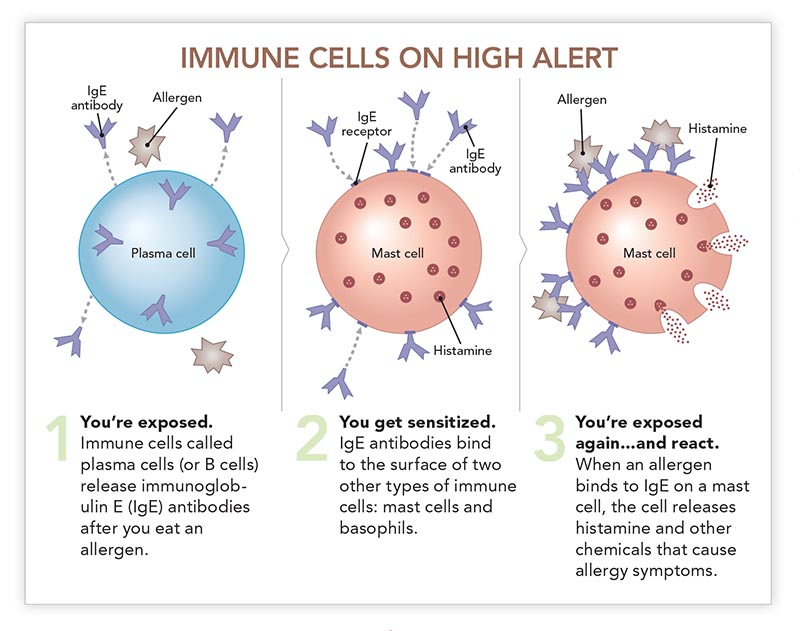 Allergic symptoms are triggered by the immune system’s response to the “foreign” protein.