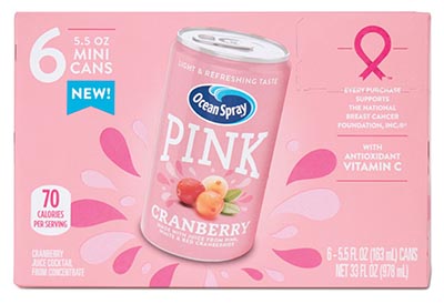 "Light & refreshing taste,” says Ocean Spray PINK Cranberry Juice Cocktail. “With antioxidant vitamin C. Made with real fruit juice.”