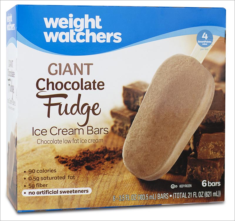 “5g fiber,” says the box of Weight Watchers Giant Chocolate Fudge Ice Cream Bars. “No artificial sweeteners.”