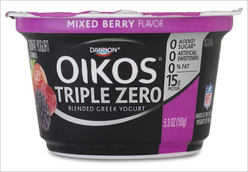 “High in fiber,” says Dannon Oikos Triple Zero greek yogurt.