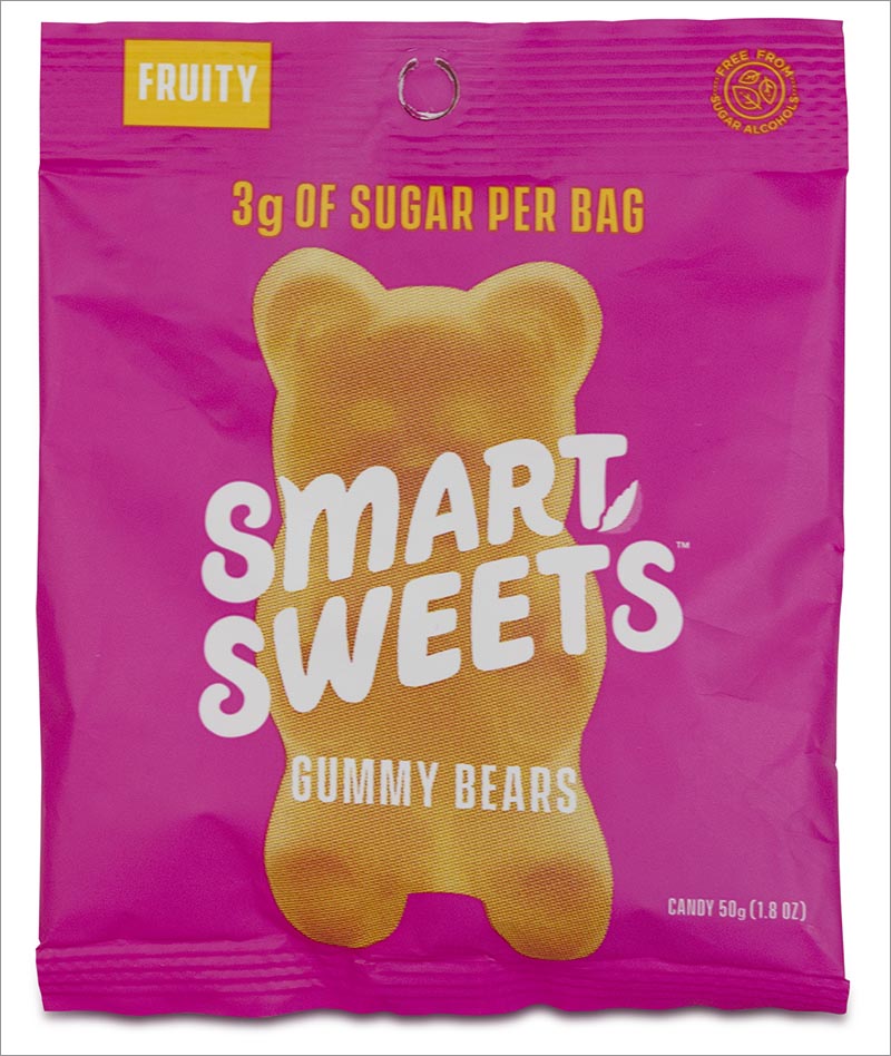 "Very high in fiber,” promise Smart Sweets Gummy Bears. “Very” is right. Each 90-calorie bag has 100 percent of a day’s fiber (28 grams). Wow.