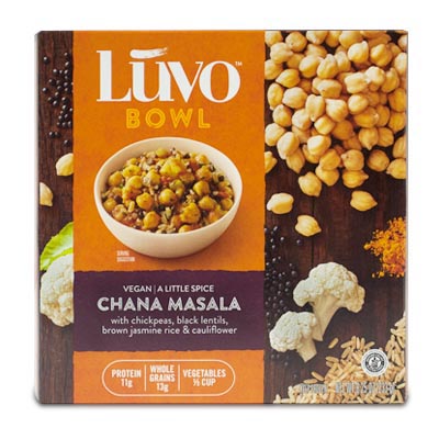 When was the last time you picked up a frozen entrée full of spiced chickpeas and black lentils? Or green garbanzos, cabbage, and kale? Or black rice, pineapple, mango, and cashews? Luvo sets the bar high for nutritious and tasty bowls. Sky high.