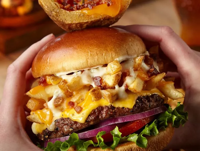 “And we mean loaded!” says TGI Fridays about its Loaded Cheese Fry Burger.