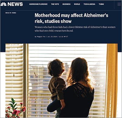 “Women who had three or more children were less likely to develop dementia than women who had only one child, [researchers] found,” reported NBC News in July.