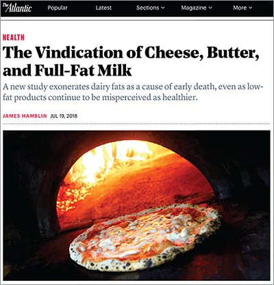 “A new study exonerates dairy fats as a cause of early death, even as low-fat products continue to be misperceived as healthier,” The Atlantic reported in July.