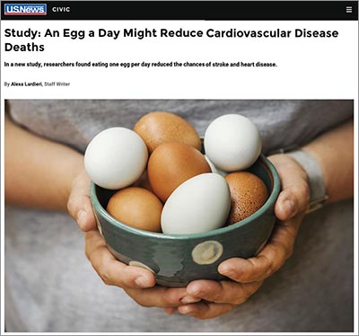 Too bad U.S. News didn’t mention that the study was done in China, where people eat fewer animal foods (eggs, meat, and dairy) than we do.1 (Only 13 percent of the participants ate an egg a day.)