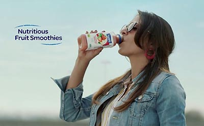 “Like nutritious fruit smoothies,” the ad continues, as the woman takes a long swig.
