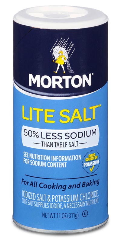 The downside: some people detect a bitter aftertaste. So try a half sodium-half potassium salt blend like Morton Lite Salt. A ¼ teaspoon has 290 mg of sodium (about half what regular table salt has) and 350 mg of potassium.