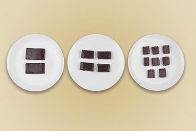Overall, people tended to eat more when the plate held a smaller number of large brownies than when it held a larger number of small brownies. For example, 60 percent of the participants ate two 1 oz. brownies, but only 40 percent ate four ½ oz. brownies and a mere 18 percent ate eight ¼ oz. brownies (even though each of the three plates held 2 oz. of brownies).