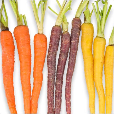 Naturally occurring plant pigments account for the color riot. Beta-carotene makes carrots and cauliflower orange, while anthocyanins turn them purple. Lycopene (plus beta-carotene) pushes carrots into the red zone, while lutein yields yellow.