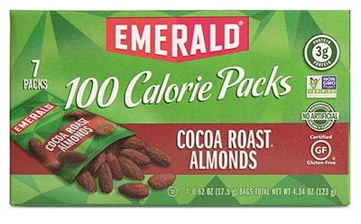 Solution: Pre-portion your nuts into reusable containers or buy single-serve pouches. Emerald's scrumptious Cocoa Roast Almonds are lightly dusted with cocoa and stevia and have a mere 1 gram of added sugar per pouch.