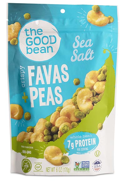 The Good Bean Sea Salt Crispy Favas + Peas beats bean puffs, hands down. They’re roasted whole beans and peas (plus oil and salt), not bean flour diluted with refined flours and starches.