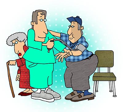 24. b (Keep your arm at your side and bent at the elbow). Your arm should be supported at heart level by the person taking your pressure or by a table (see Jan./Feb. 2018).