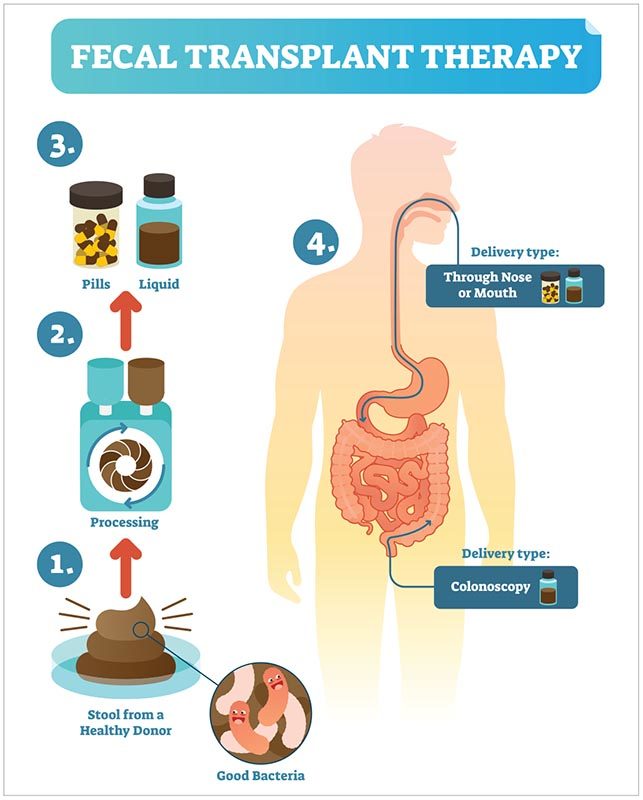 “In a fecal microbiome transplant, you transfer the gut microbiome from a healthy donor to a patient,” explains Taylor. “The goal is to restore a stable microbiome.”