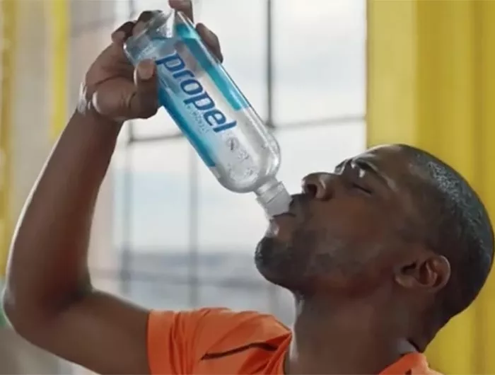 “Propel Electrolyte Water is made with more electrolytes than any other national water to support next level hydration,” says Propel.