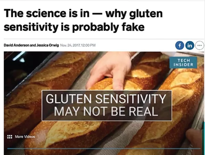 “The science is in—why gluten sensitivity is probably fake,” ran the headline on businessinsider.com in 2017.