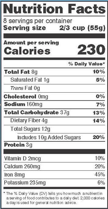 The new Nutrition Facts labels also give more visual emphasis to calories and will no longer have a reference to “calories from fat,” reflecting the new understanding that saturated and trans fat increase the risk of heart disease, while polyunsaturated fats and oils can reduce that risk. The labels will make voluntary the declarations for vitamins A and C, of which most Americans get plenty, but declarations for potassium and vitamin D will be required. The new rule lowers the Daily Value for sodium slightly, from 2,400 mg per day to 2,300 mg per day (CSPI would have preferred a more protective Daily Value of 1,500 mg per day).